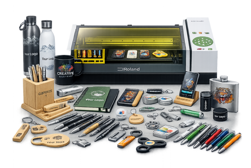 Tlač textu, fotografií, logá alebo iných vzorov priamo na telefón, darčekové predmety, papier, golfové loptičky, priemyselné komponenty či elektronické zariadenia. Vďaka možnosti bieleho atramentu pridáva možnosť tlače na tmavé alebo priehľadné povrchy.